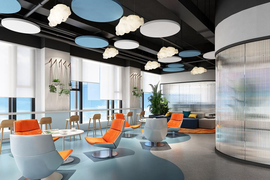 地面獨(dú)特的裝飾、裸露的天花構(gòu)造和異性造型等豐富多元的場(chǎng)景設(shè)計(jì)允許員工自由選擇最佳的工作方式完成每日的工作,以其創(chuàng)新的設(shè)計(jì)連接起周邊的工作區(qū),并吸引人們來此交流匯聚,成空間的核心紐帶。每天的早會(huì)由此開始,團(tuán)隊(duì)協(xié)作會(huì)議也在此愉快地開展。會(huì)議室和安靜的則用于更正式的會(huì)議或?qū)W⒌墓ぷ餍袨?,大型社區(qū)和茶水吧臺(tái)區(qū)域則更有利于促進(jìn)員工間的交流協(xié)作和即興互動(dòng)。