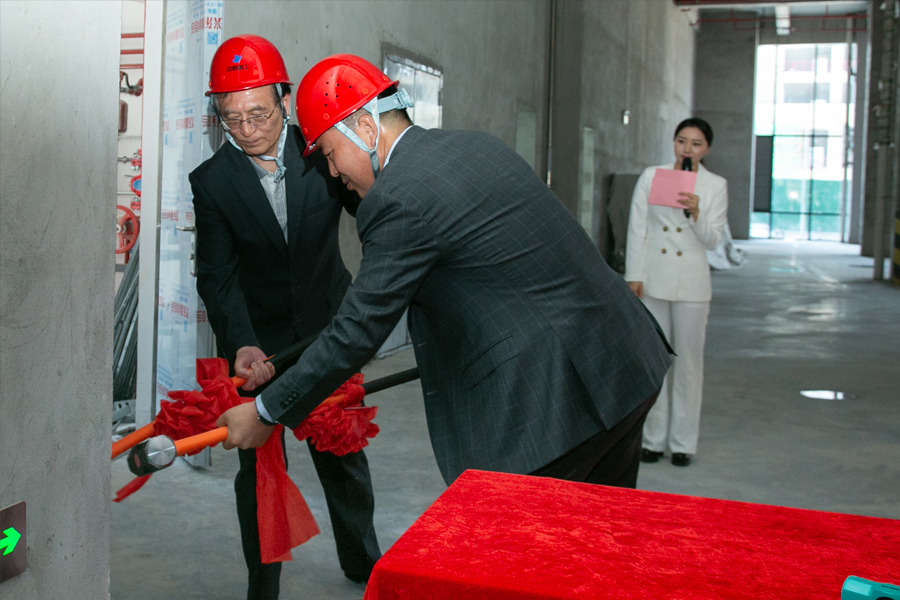 先健副總裁韓江波、中泰建工董事長常占軍進行敲墻環節