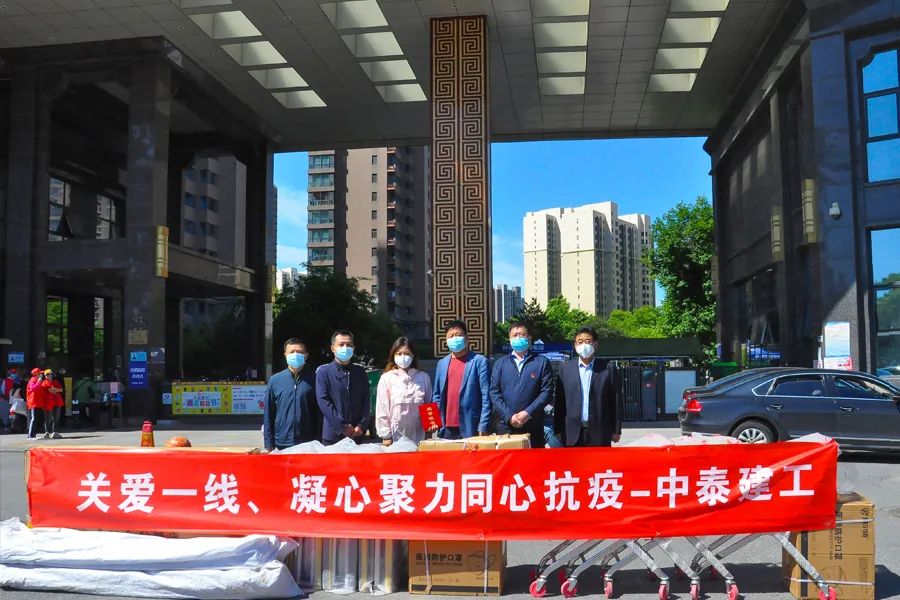 昌平區工商聯常務副主席靳紅以及回龍觀街道各位領導,中泰建工董事長常占軍、黨支部書記趙立國,出席捐贈儀式。