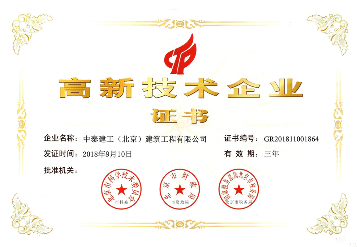 2015 年 9 月公司順利通過 IS9001 國家質量標準認證;2017年12月被評為AAA企業并頒發企業信用等級證書;2018年1月30日被評為中關村高新技術企業。擁有各類大中型工程機械設備及檢測儀器。